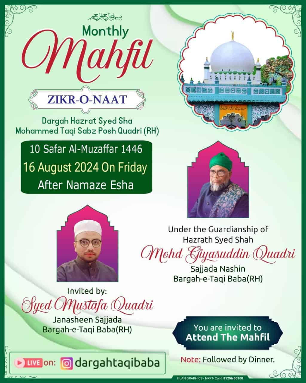 Venue: Dargah Hazrat Syed Sha Mohammed Taqi Sabz Posh Quadri (R.), Hydrabad, India.