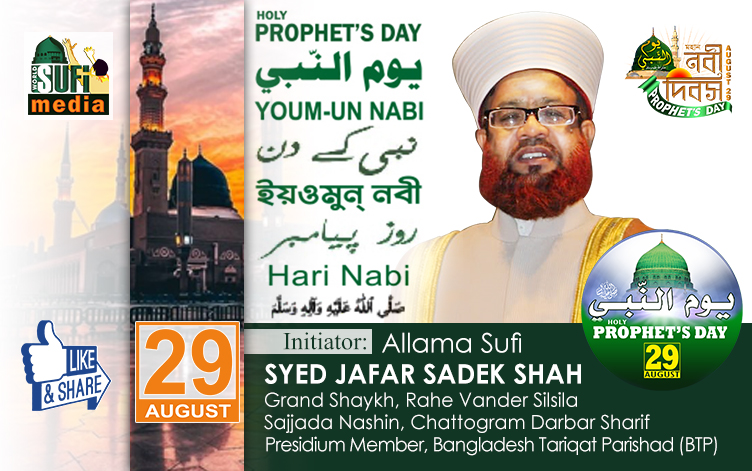 The initiator and organizer of the Holy Prophet’s Day (August 29) Sufi Syed Zafar Sadek Shah is the Grand Shaykh of Rahe Vander Silsila, Sajjadanshin of traditional Chittagong Durbar Sharif and Presidium Member of Bangladesh Tariqat Parishad (BTP).